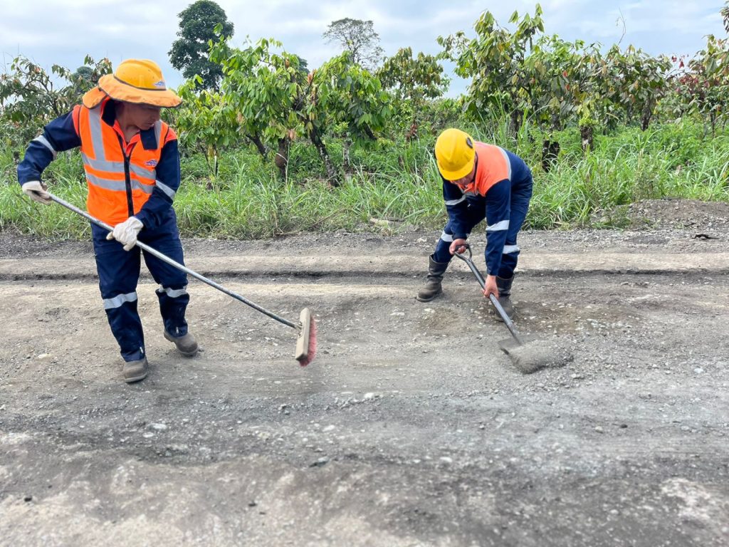 “Estamos bacheando la vía La Isla, hemos iniciado desde el centro de salud hasta este sector; la vía ha estado muy destruida y ahora estamos trabajando para mejorarla. (…) Lo primero que hacemos es cortar todo lo dañado, igualamos y posterior limpiamos con la pala y escoba todos los restos del material, botamos la emulsión asfáltica, el material y posterior pasamos el rodillo”, indicó.