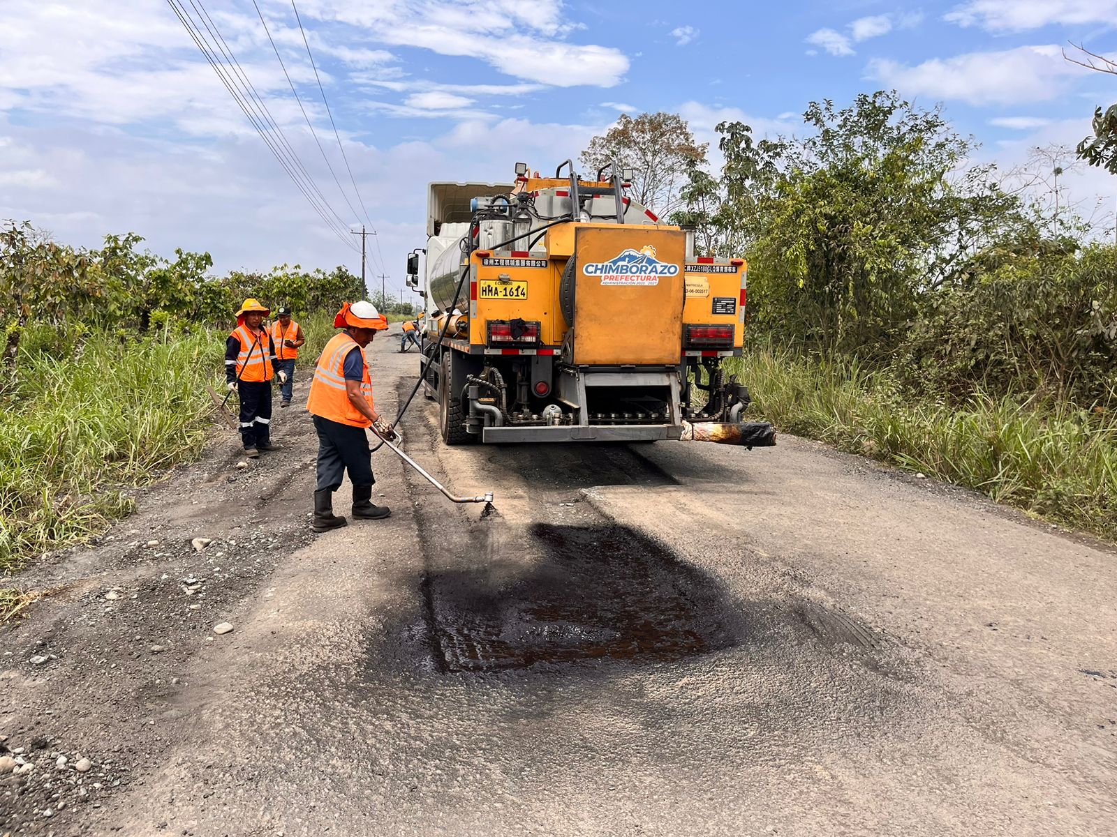 La Prefectura de Chimborazo a través de la Dirección de Obras Públicas realiza trabajos de Bacheo en la vía La Isla del recinto Bueno Aire en el cantón Cumandá, con el objetivo de mejorar el tránsito vehicular con una vía en óptimas condiciones.